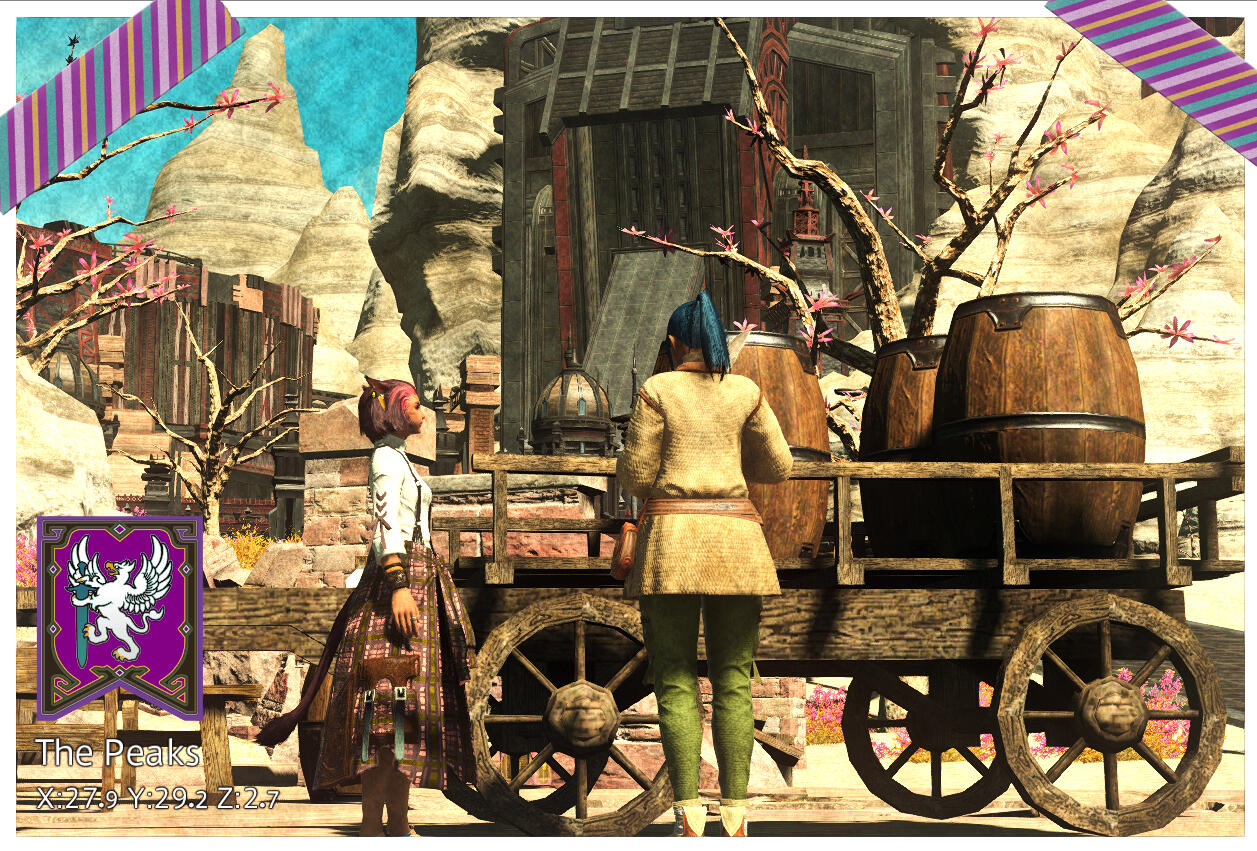 - The fusion of cultures that results from the influx of Alliance soldiers, merchants, and travelers, and what that means in the context of hospitality work14th Sun of the Fifth Astral Moon"They call it the Peregrine District on account of all those that used to live in this part of the city without Imperial citizenship. I don't know if I'm Ala Mhigan enough to count as such, remote mountain bird I am —those of my parents' clan never bowed the knee to any Cotter king, nor fought under Gylbarde's banner. To those who fly into the airship landing, though, I must seem as Ala Mhigan as they come, standing at the tent door like a market crier — tea for a coin, simit for two! Or perhaps the word means more than it did before, far flung as the cry "For Ala Mhigo!" has become. It's a city, aye, but one that breathes beyond the ribcage of Abalathia's Spine, her children scattered beyond the lines drawn up by long-ago wars. "Tea and simit, tea and simit!" says the girl in the market. "For Ala Mhigo, for Ala Mhigo!"- Temenha Tanria